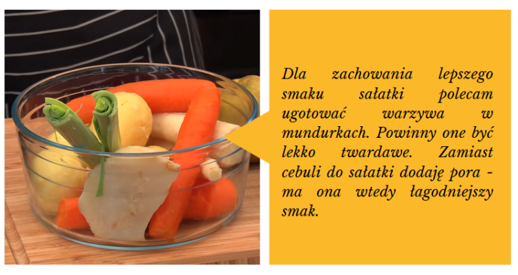 Ile domów tyle sposób na przygotowanie sałatki jarzynowej – i zapewne wszystkie są rewelacyjne a sałatka wychodzi bardzo smaczna. Dzisiaj pokażę Wam jak ja ją robię. Do jej przygotowania użyję ziemniaków, marchewki, pietruszki , selera, pora, jajek, jabłka, ogórków kiszonych, mrożonego groszku. Do przygotowania polecam użyć domowych ogórków kiszonych i domowego majonezu.
