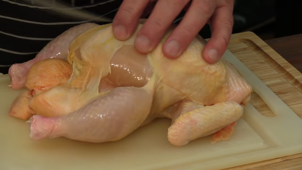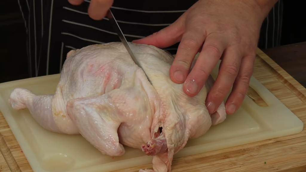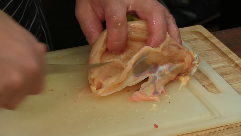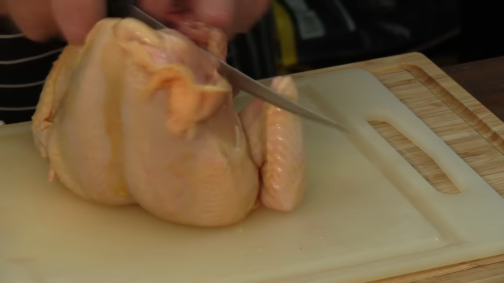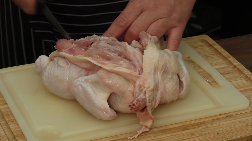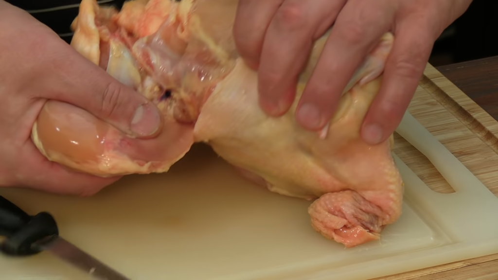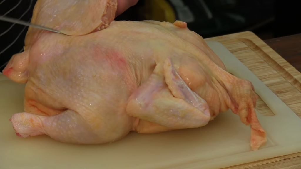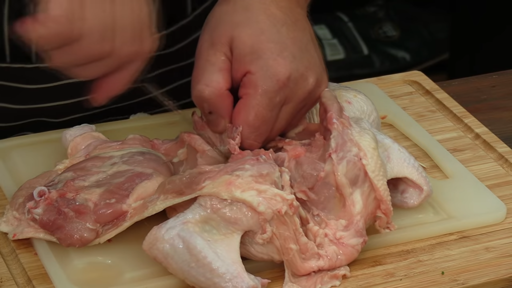 Pierwszą czynnością jest nacięcie skóry koło uda, można delikatnie nagiąć udka i przełamać kości, a następnie przeciąć nożem skórę z mięśniami. Ze skrzydełkami postępujemy tak samo. Odcinamy korpus czyli słynną porcję rosołową. Z piersi można zdjąć skórę – nacinamy ją na środku i szukamy mostka. Nożem ciągniemy po kości i wycinamy piersi. Należy pilnować, aby ciąć gładko, aby nie poszarpać mięsa. Z mięsa z piersi można wyciąć także polędwiczki.