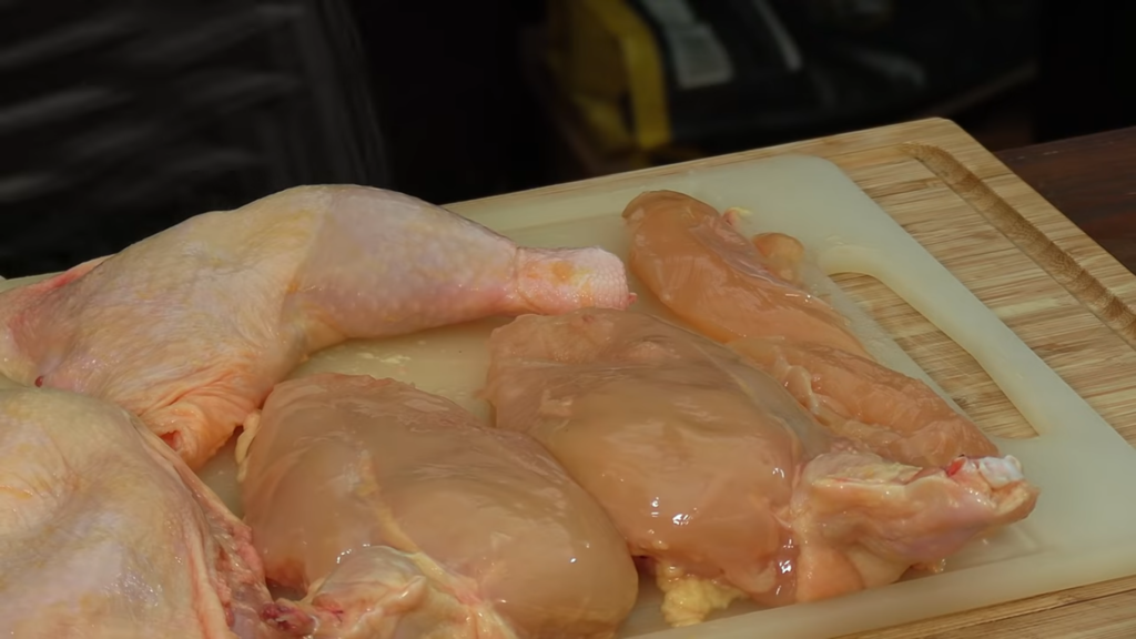 Porcjowanie czyli podzielenie kurczaka na części jest czynnością, która bardzo przydaje się w kuchni. Zazwyczaj cena całego kurczaka jest dużo niższa niż cena jego zakupu w porcjach. Kurczak jest miękkim mięsem i kroi się go dość łatwo – wystarczy plastikowa deska, ostry i twardy nóż oraz nóż do filetowania.