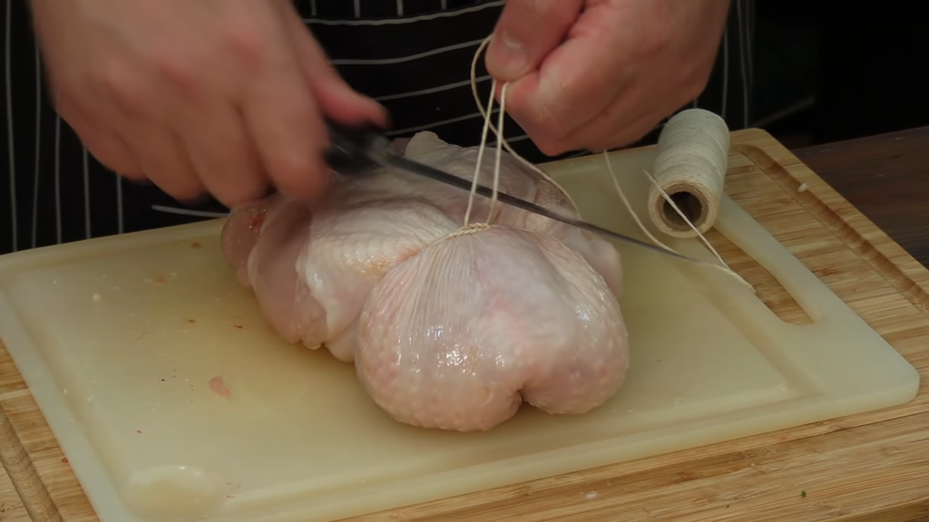 - wytrybowanego kurczaka po nafaszerowaniu należy związać sznurkiem